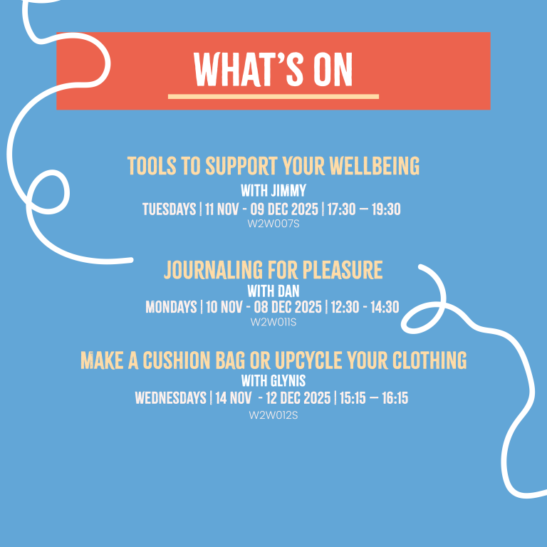 Each course is guided by a supportive Wellbeing Coach, ensuring you get the encouragement and advice you need. From mindfulness and art to computer skills and language support, there’s something for everyone. You don’t need any previous experience or qualifications – just bring yourself and an open mind.